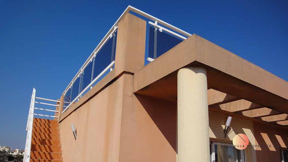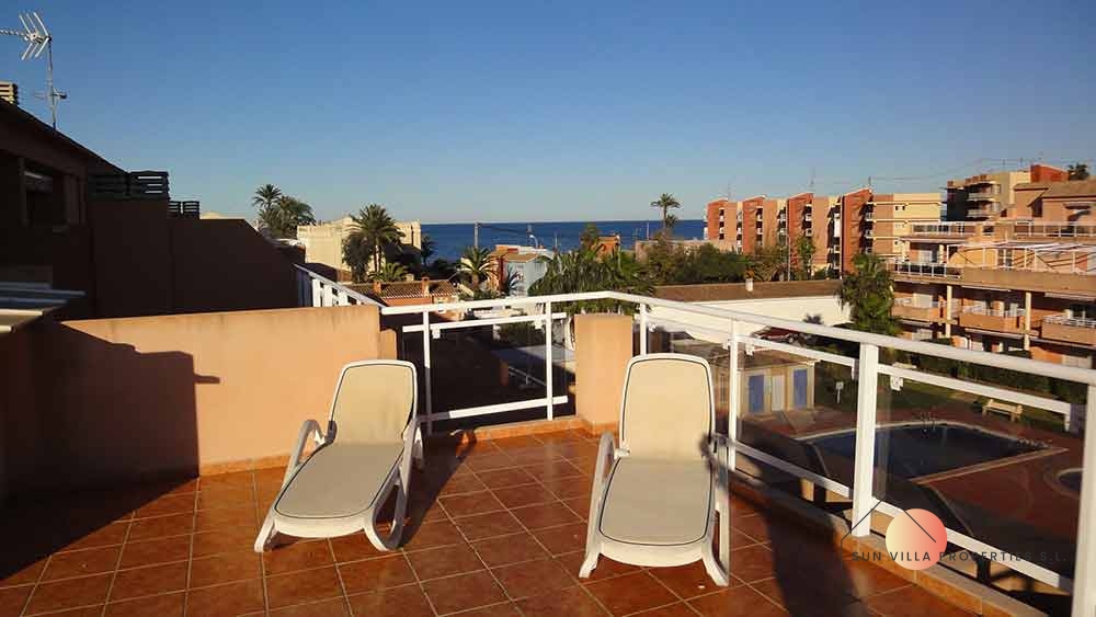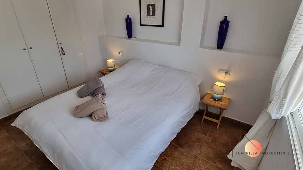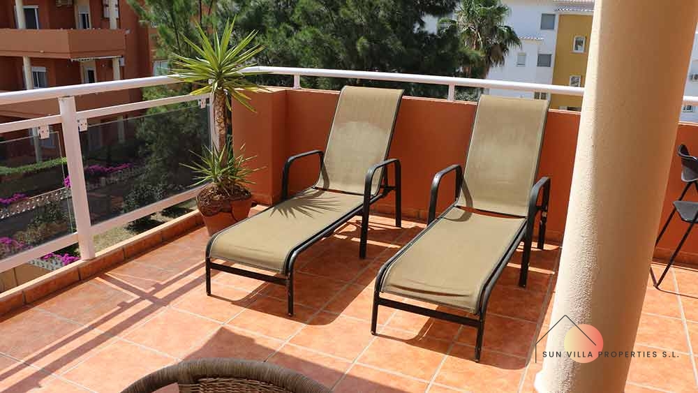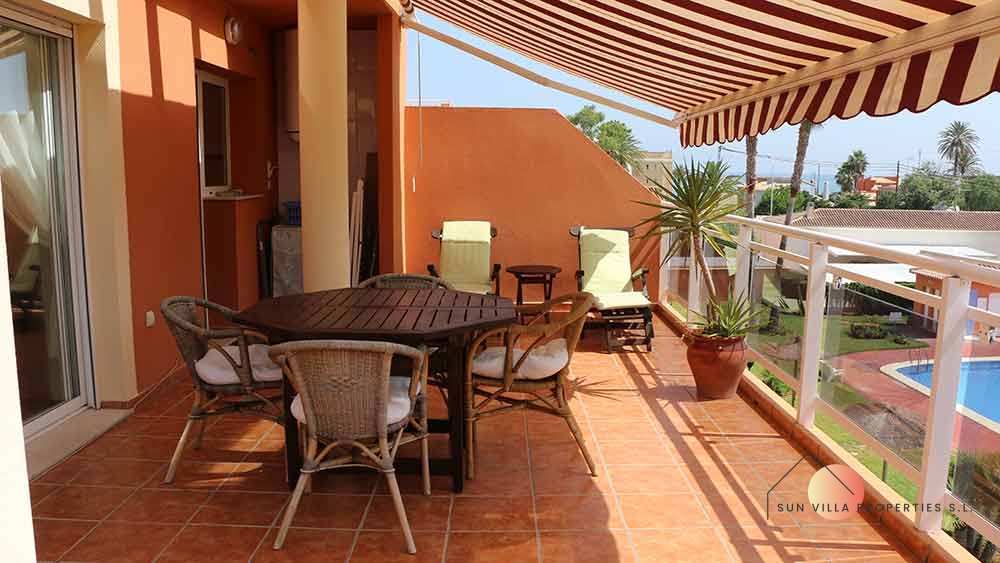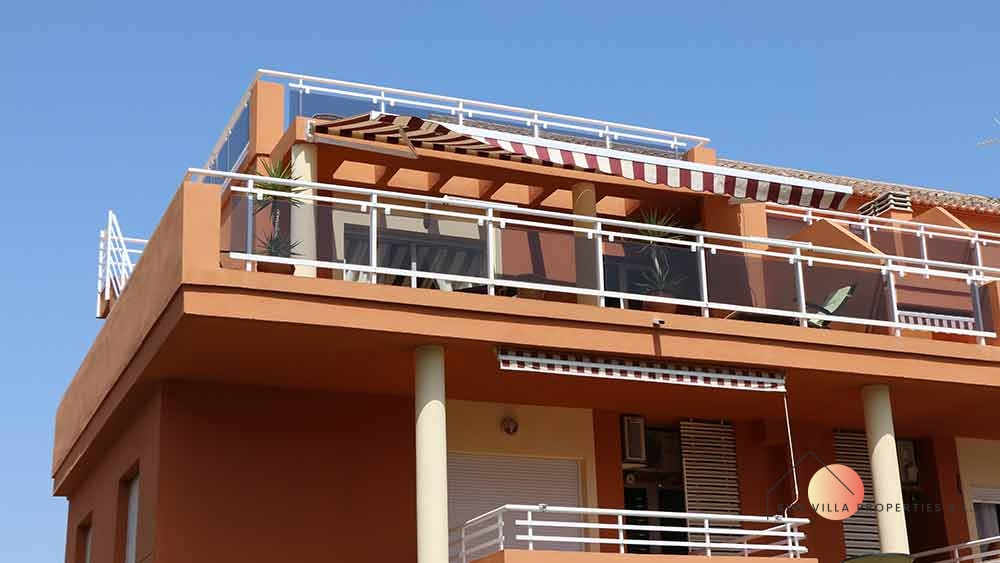 The complex is fully secured with remote controllable gates. We rent out a 2-bedroom penthouse apartment with sea view with 70m2 of terraces (divided over two floors) and a 3-bedroom ground floor apartment with fenced in garden. Both apartments are situated on the same corner.