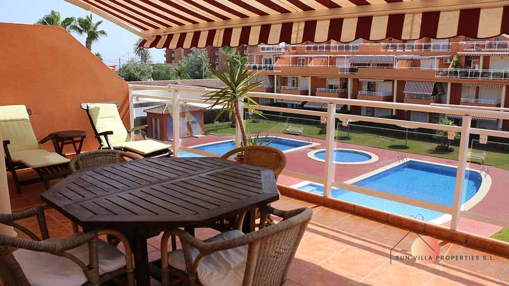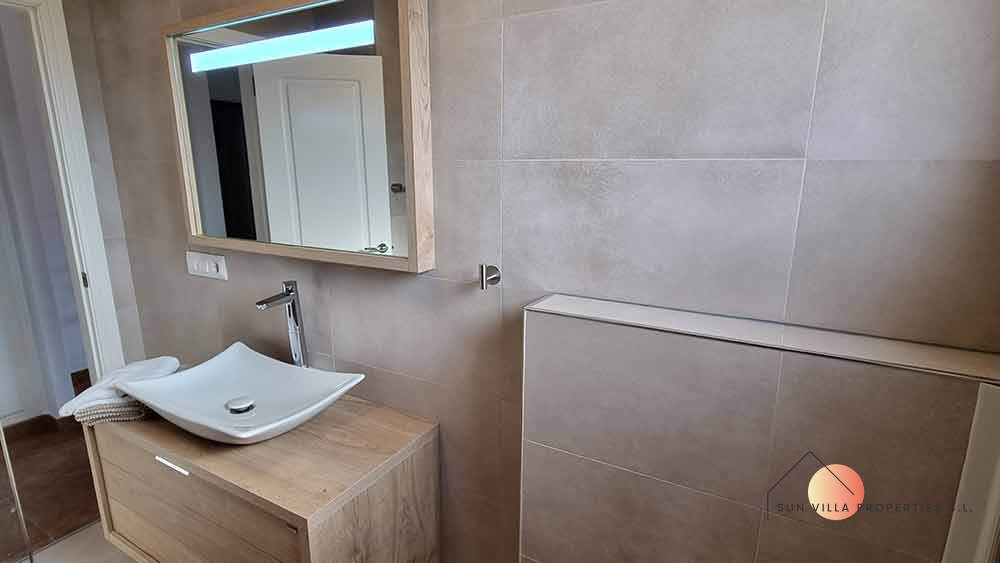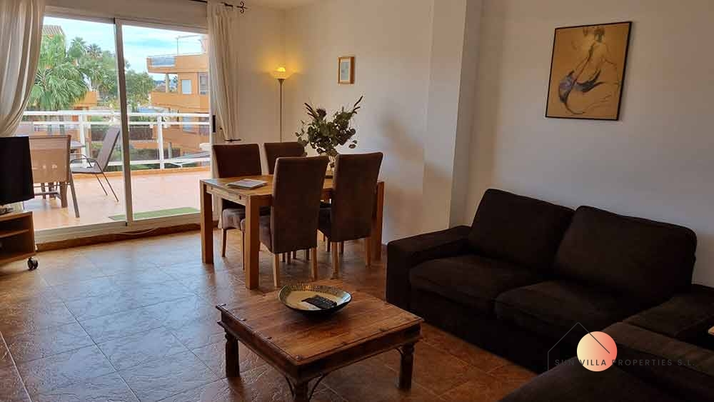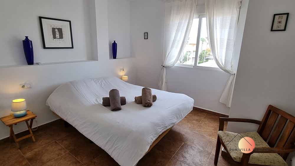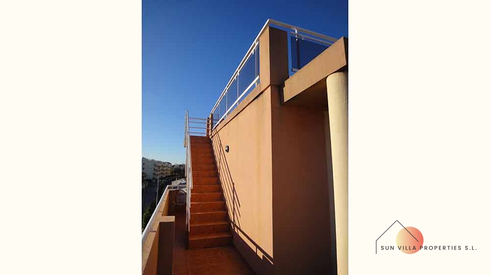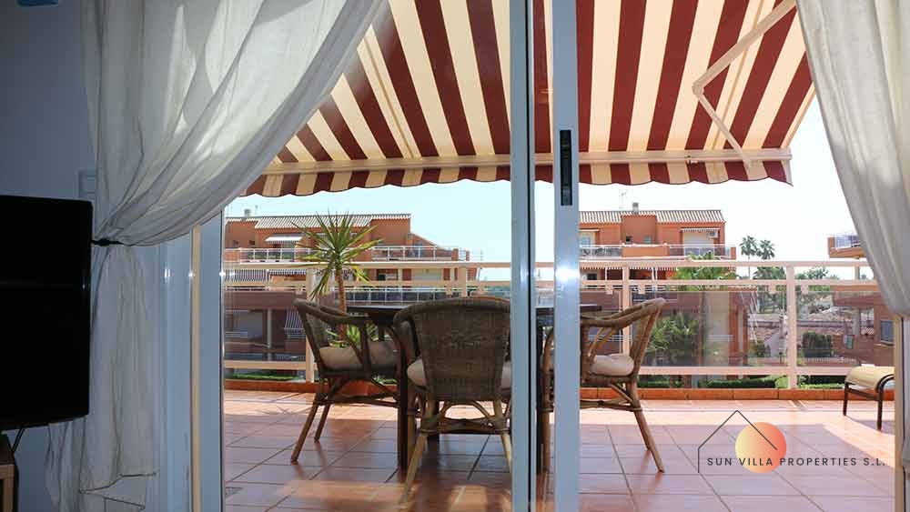 The complex is fully secured with remote controllable gates. We rent out a 2-bedroom penthouse apartment with sea view with 70m2 of terraces (divided over two floors) and a 3-bedroom ground floor apartment with fenced in garden. Both apartments are situated on the same corner.