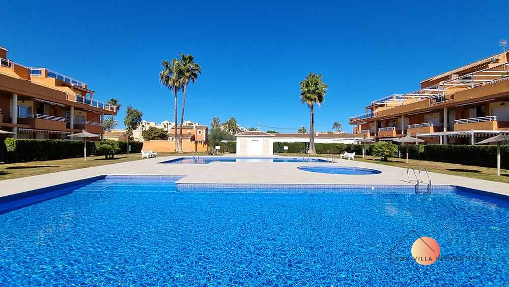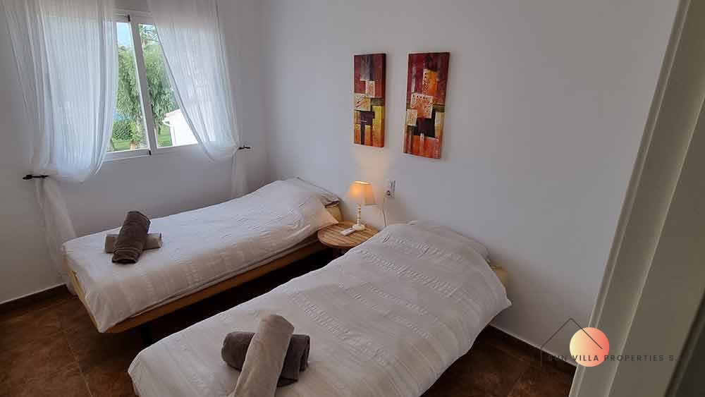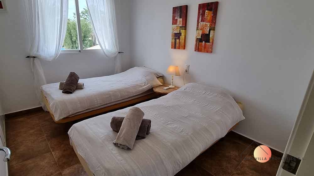 This small scale complex with 56 privately owned apartments is just 50m from the sandy beaches, has two large swimming pools and a separate children’s pool, outside toilets and showers. Each apartment has its own designated parking space.