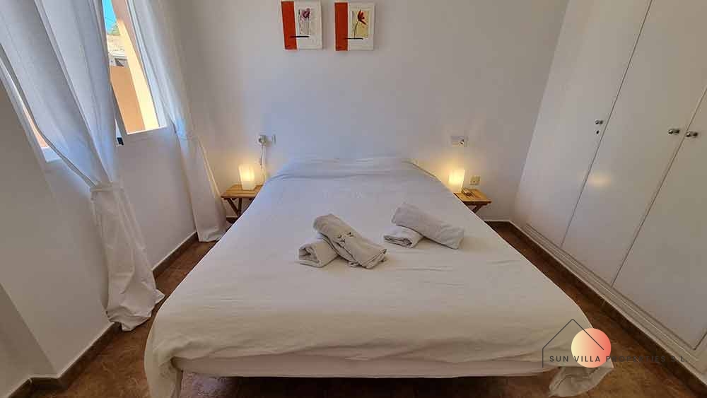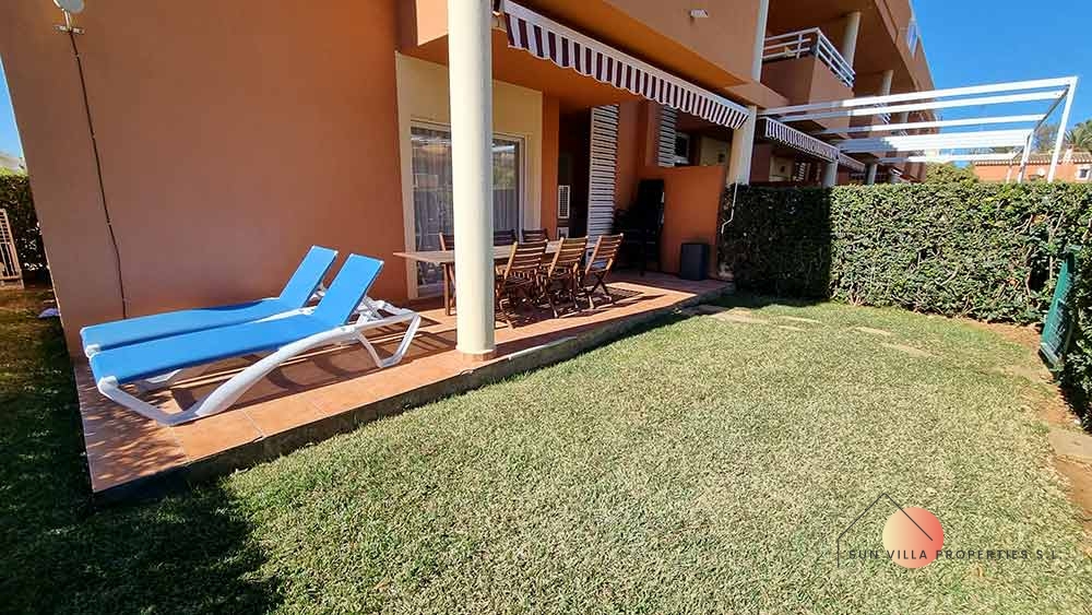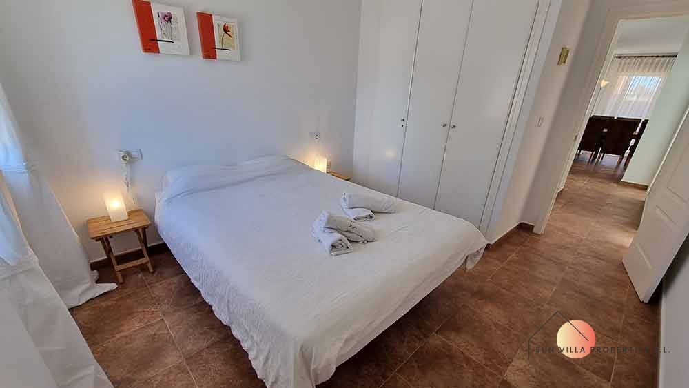 This small scale complex with 56 privately owned apartments is just 50m from the sandy beaches, has two large swimming pools and a separate children’s pool, outside toilets and showers. Each apartment has its own designated parking space. The complex is fully secured with remote controllable gates. We rent out a 2-bedroom penthouse apartment with sea view with 70m2 of terraces (divided over two floors) and a 3-bedroom ground floor apartment with fenced in garden. Both apartments are situated on the same corner. All amenities within walking distance: bars, small supermarket, restaurants, ice cream parlour. Very suitable for children and/or 2 families traveling together but wanting to have their own space.